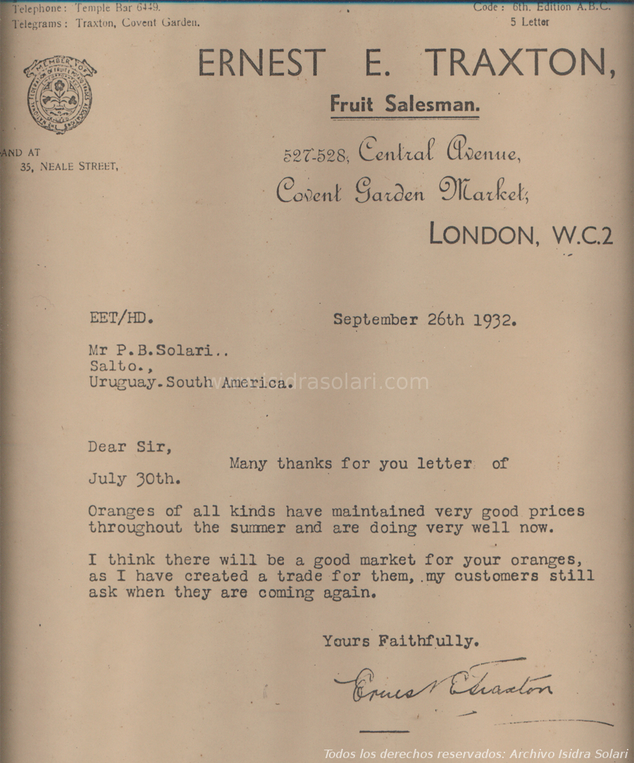 El mercado de entrada de casi todo el norte de Europa era el puerto de Rotterdam, allí se vendía la fruta en remates al mejor postor. Sus marcas comerciales, “la naranja Solari”, tenían un precio mayor ya que se reconocía un origen de calidad que los clientes finales apreciarían al llegar a sus manos en los supermercados.